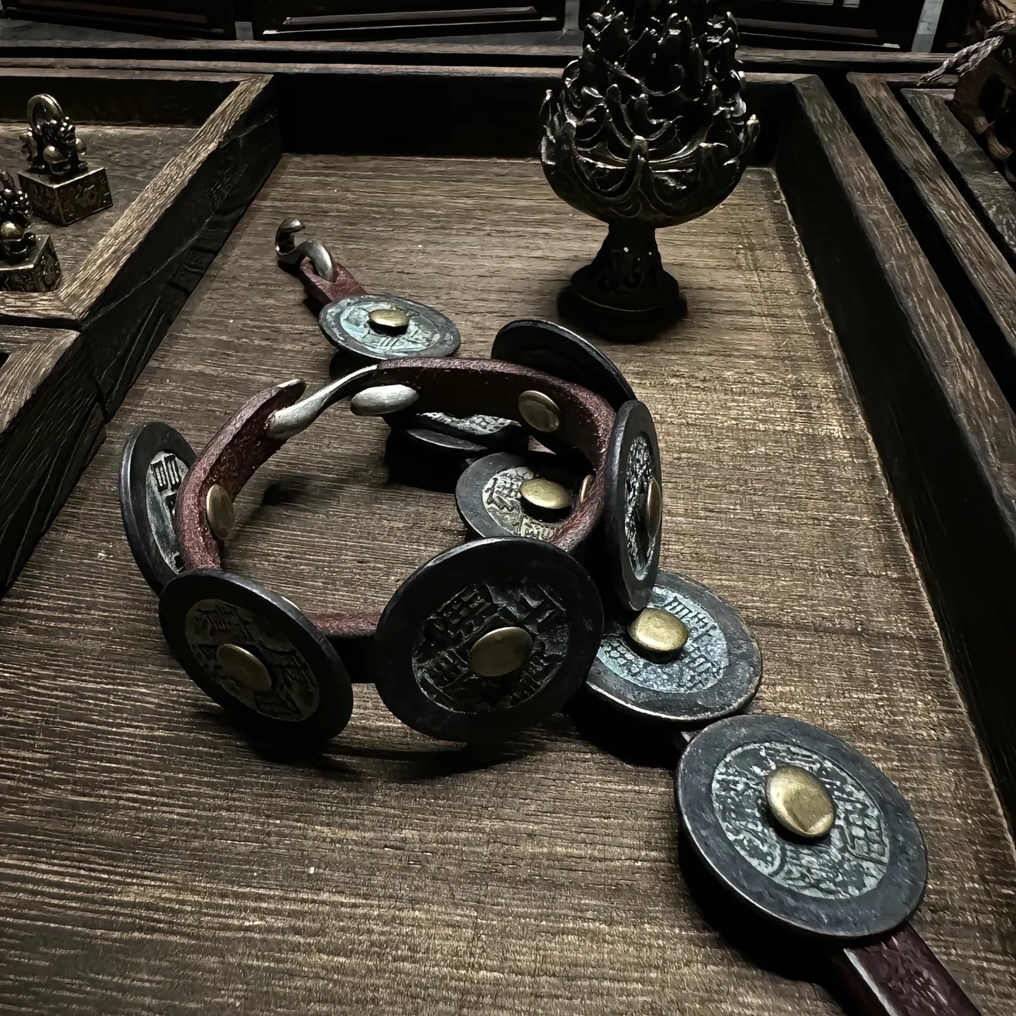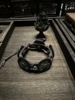 Chinese Style Five Emperors Coins Leather Bracelet Vintage Copper Coin Bangle Lucky Feng Shui Jewelry