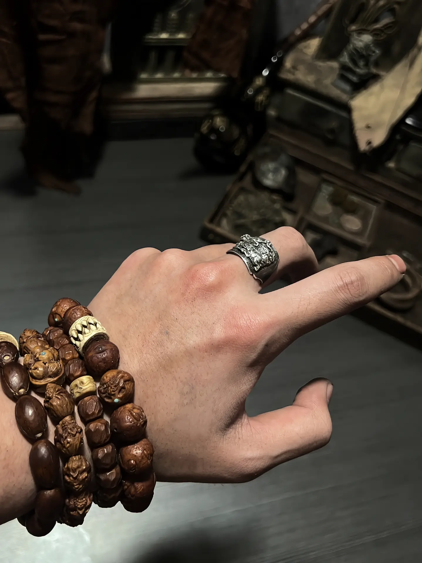 Crafted with an antique-finished sterling silver technique, the ring boasts a thick, vintage texture. It retains the bold shape of a traditional thumb ring while embodying the profound aura of Taoist culture. A masterpiece of craftsmanship with both collectible value and protective meaning, it is perfect for those who pursue Eastern culture and seek a portable talisman. Wear it to ward off evil, welcome blessings, and guard a lifetime of smoothness and safety.